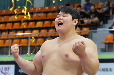 2022년 6월, 울산대 2학년 재학 중이던 김민재는 민속씨름리그 데뷔전이었던 단오장사대회에서 곧바로 백두장사에 올랐습니다. 같은 해 11월에는 천하장사 씨름대축제에서 천하장사까지 거머쥐며 씨름판을 놀라게 했습니다. 1985년 이만기 이후 37년 만에 처음 나온 대학생 천하장사로 이름을 올린 것입니다.