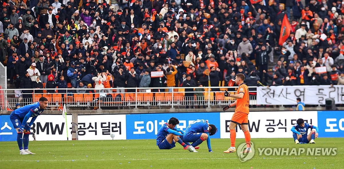 운명의 날이었던 11월 9일, 수원삼성에게 최악의 상황이 펼쳐졌습니다. 전남 드래곤즈가 서울 이랜드를 4-0으로 대파하며 4위(승점 57)로 올라섰고, 부산 아이파크도 부천FC를 3-1로 꺾으며 5위(승점 56)를 차지했습니다. 결국 수원삼성은 득점에서 밀려 최종 6위로 밀려나며 승강 플레이오프 진출권 확보에 실패했습니다.