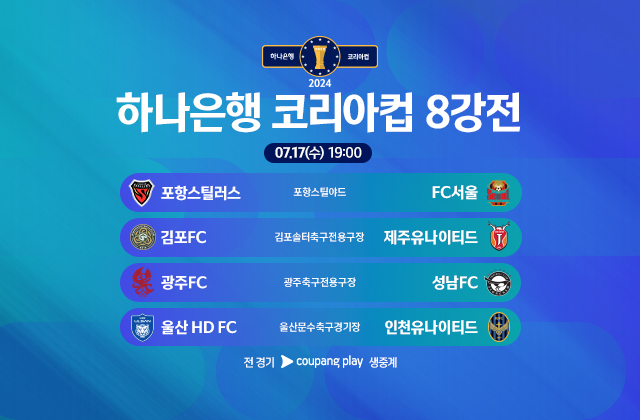 2024 하나은행 코리아컵 준결승전 전 경기는 쿠팡플레이 에서 생중계 됩니다.