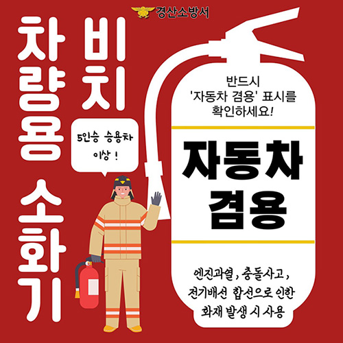 주의할 점은 '자동차 겸용' 표시가 없는 일반 분말소화기와 에어로졸 형태의 소화기는 법적으로 인정되는 차량용 소화기가 아니라는 것입니다. 따라서 구매 시 반드시 이 점을 확인해야 합니다.
