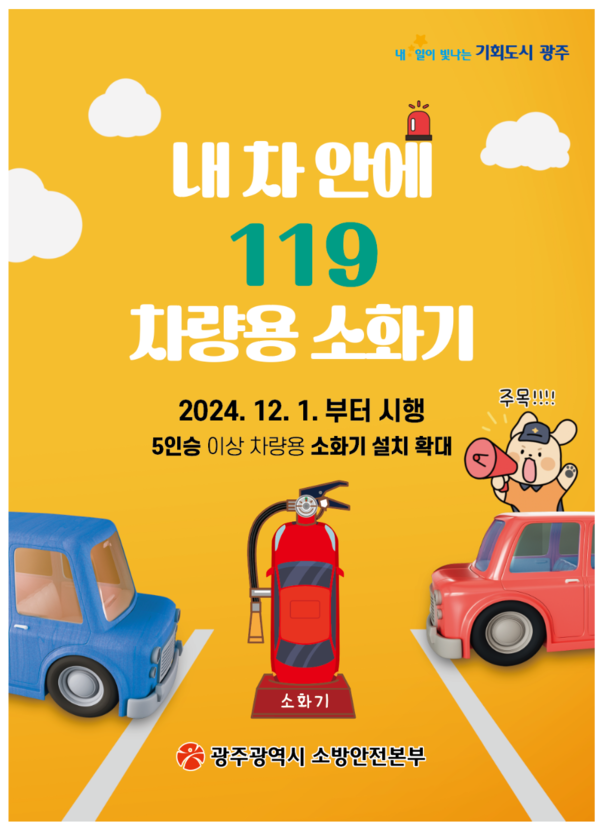 2024년 12월 1일부터 5인승 이상 모든 자동차에 차량용 소화기 설치가 의무화됩니다. 이는 '소방시설 설치 및 관리에 관한 법률' 개정에 따른 것으로, 3년간의 유예 기간을 거쳐 시행되는 중요한 안전 정책입니다.