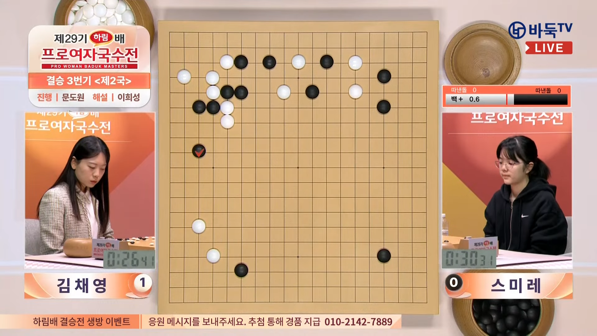 치열한 경쟁 끝에 김채영 9단과 스미레 3단이 결승에 진출했고, 결승 3번기를 통해 최종 우승자가 가려졌습니다. 대회의 우승 상금은 3000만 원, 준우승 상금은 1000만 원으로 책정되어 있어 선수들의 열정적인 경쟁을 더욱 고조시켰습니다.