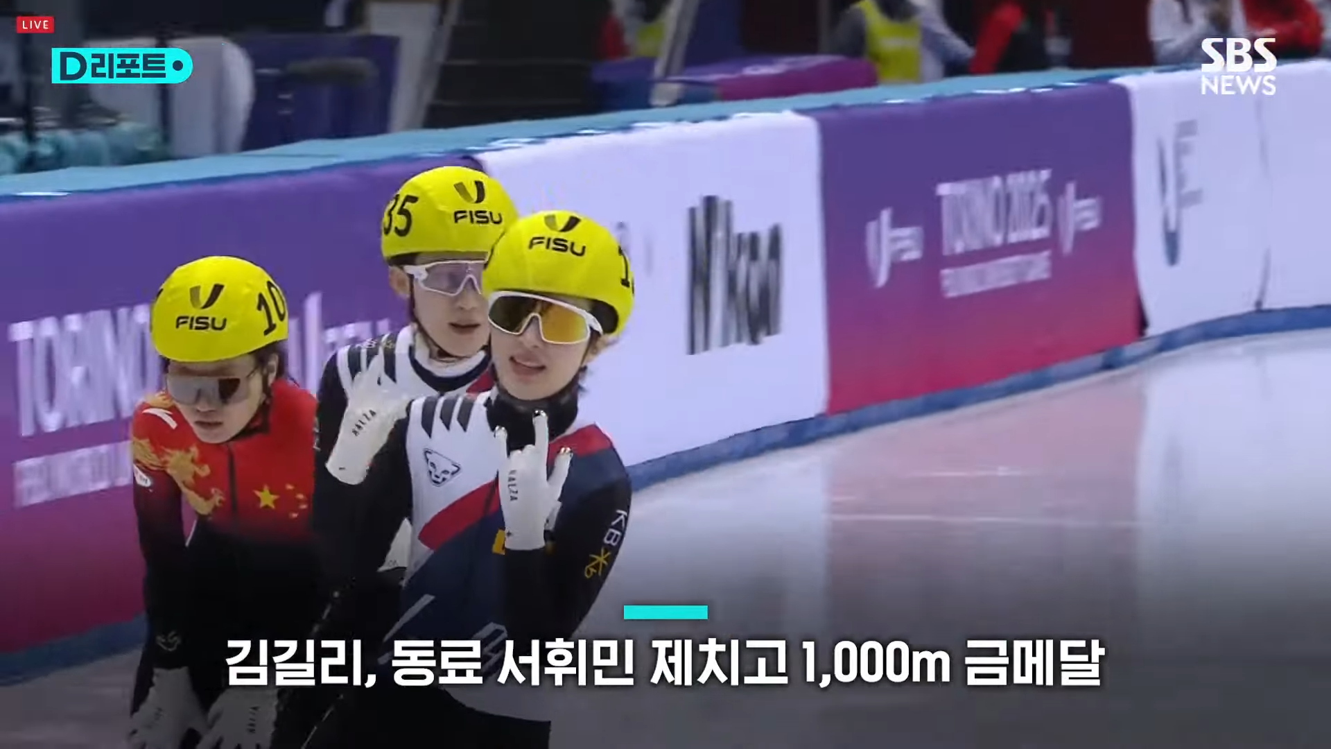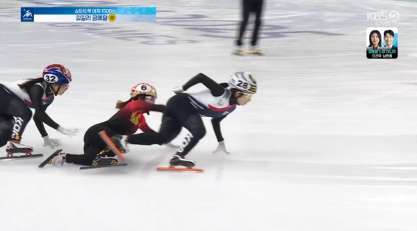 김길리는 결승선을 4바퀴 남기고 아웃코스로 나와 역전을 노렸고, 1위를 달리던 중국 양징루가 넘어지면서 선두로 올라 가장 먼저 결승선을 통과했습니다.