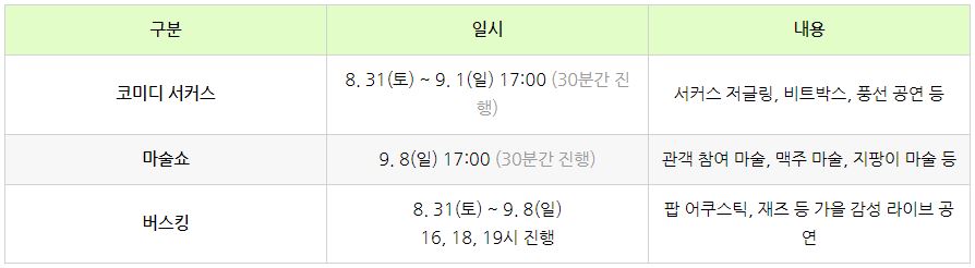기간 : 2024.8.24(토) ~ 9.8 (일) 중 주말